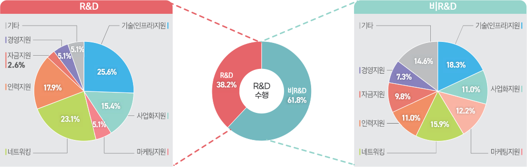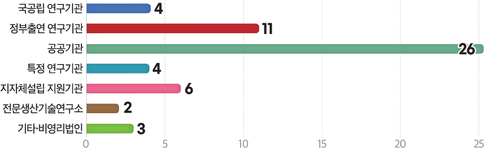 지역 혁신기관 중 ‘주요기능’으로 R&D를 수행한다고 응답한 기관을 대상으로 R&D 수행분야를 분석, 각 기관의 R&D 활동 역량을 1로 보았을때 비중을 의미(보안기관 제외)